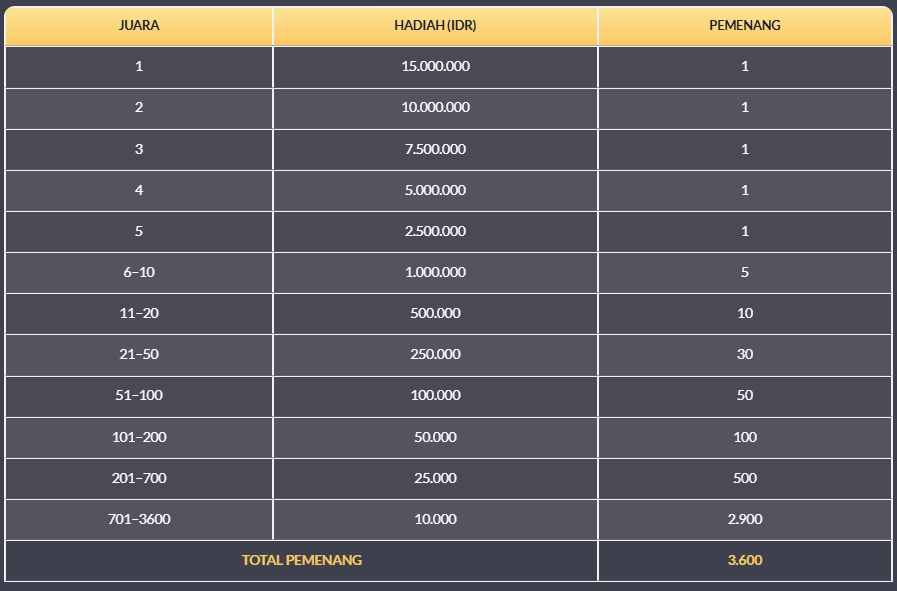 Tabel Hadiah :